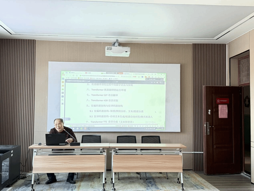 为促进 AI 技术与外语教育深度融合,夯实 AI+人文社科研究基础,助力科研成果产出与教学实践创新,外国语学院于2025年11月12日开展“学术月”系列活动——《机器翻译及自然语言理解的基本原理》专题讲座。讲座特邀自治区银龄团教授何松华进行分享,学院全体教师及研究生参会,外国语学院学术院长阳志清主持。