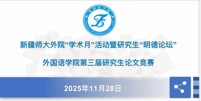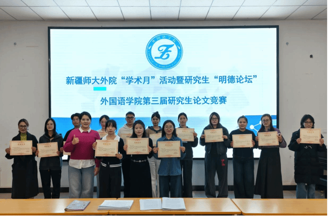 为深入推进研究生学术创新能力培养,营造严谨求实的科研氛围,11月28日下午,外国语学院在笃学楼120报告厅顺利举办“明德论坛”第十九期活动暨第三届研究生论文竞赛优秀论文分享与颁奖仪式。学院党委副书记、院长伊力米热・伊力亚斯,研究生辅导员古丽福子・艾尼瓦及全体研究生共同参与。活动由2025级学科英语专业研究生曹郁薇主持。