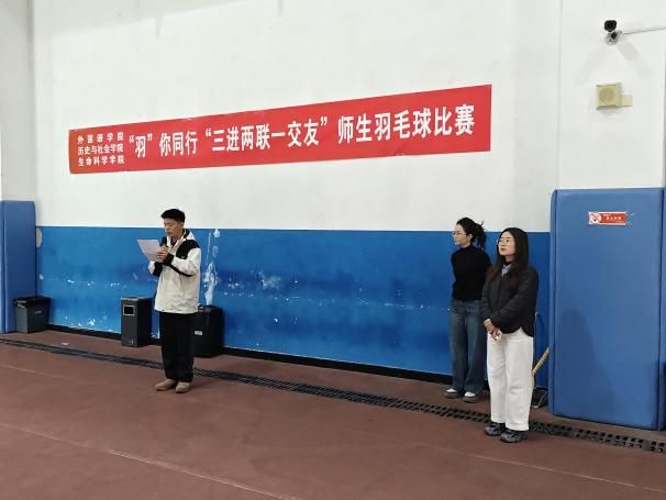 为扎实推动“三进两联一交友”活动走深走实,深化院系交流、拉近师生情谊,丰富校园课余文体生活,搭建朋辈互动交友的活力平台,3月22日下午,外国语学院联合历史与社会学院、生命科学学院在新疆师范大学(温泉校区)体育馆举办“三进两联一交友”羽毛球友谊赛。