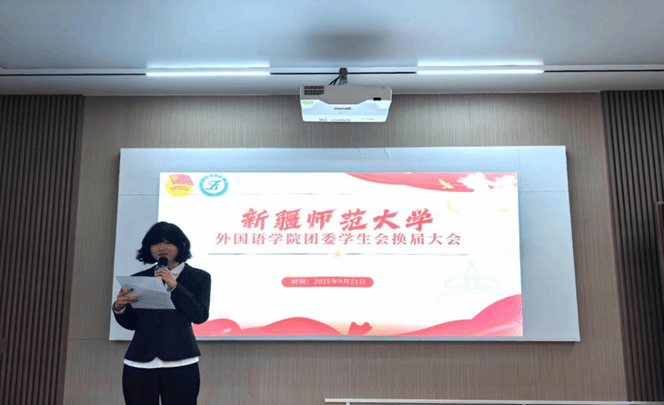 为深入贯彻习近平总书记关于青年教育的重要论述,落实党中央关于推动高校学生会深化改革的相关措施,发挥学生会自我管理,自我服务职能,强化学生会朋辈教育引导作用,优化学生干部质量,保障学生管理服务工作连续性,外国语学院于9月21日晚在文科5号楼107室举行团委学生会换届大会。学院学生工作办公室副主任、团委书记文佰马,辅导员谢斯琪老师以及学院学生会全体成员参会。活动由英语24-1班徐婧麒主持。