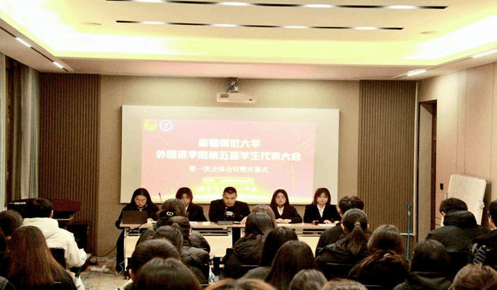 为落实党中央关于共青团工作的重要指示,强化党建带团建,推进学生会干部队伍建设,提升学生组织引领和服务能力,发挥学生代表参与管理、联系学生的重要作用,外国语学院第五次学生代表大会于2025年10月23日在文科五号楼107隆重召开。学院党委副书记、纪委书记季茂岳,团委工作负责人谢斯琪以及学院团委、研究生会、学生会及本硕班级代表共计70人参加大会。大会由学院学生会主席团成员李佳琪主持。
