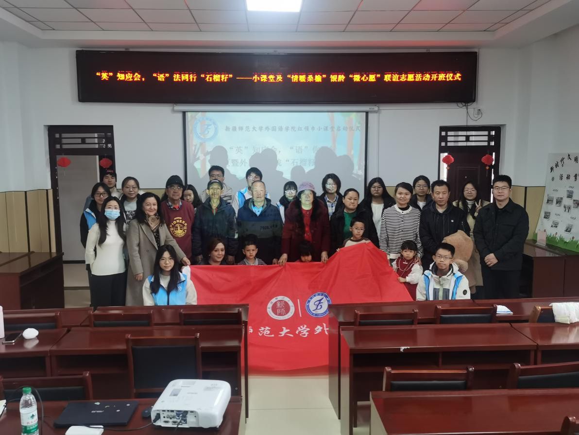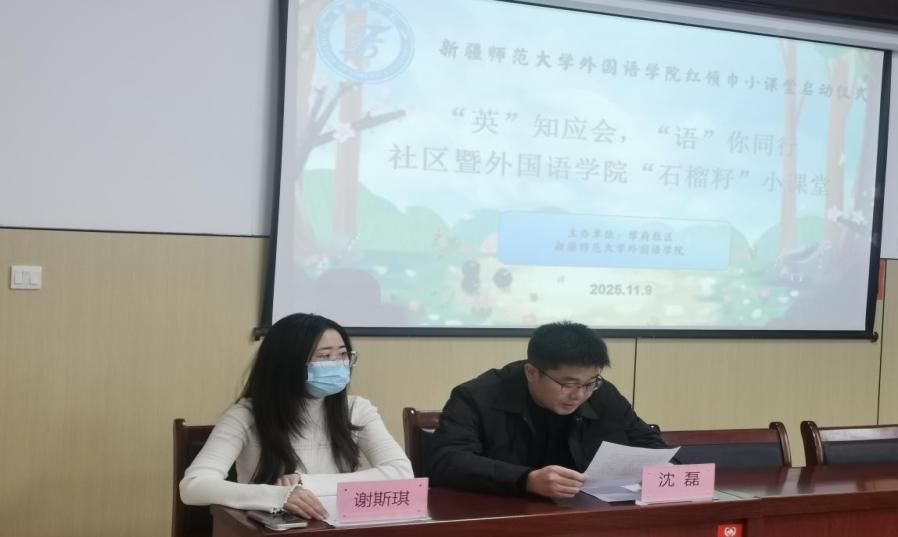 为深入贯彻习近平新时代中国特色社会主义思想,发挥高校服务社会功能,新疆师范大学外国语学院青协支队携手乌鲁木齐市水磨沟区学府社区,开展“英”知应会,“语”你同行 —“石榴籽” 小课堂志愿服务活动。社区、学校、志愿者团队三方联动,50 余名社区儿童及家长踊跃参与,在趣味互动中播撒知识种子,传承红色力量。