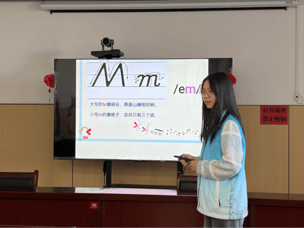 课堂上,志愿者化身“小老师”,贴合儿童好奇心强、模仿力佳的特点设计教学内容。从字母读写、基础词汇入手,通过单词卡片、趣味抢答、小组 PK、“宾戈游戏” 等形式巩固知识;结合 “超市购物”“医院问诊” 等生活场景开展情景对话,用图形类比辅助记忆,让孩子们在寓教于乐中夯实英语基础、提升表达能力。小朋友们主动举手展示学习成果,生涩却认真的英语表达赢得全场喝彩。除英语教学外,志愿者还将红色故事融入课堂,带领孩子们在英雄事迹中感悟爱国情怀,在先辈风范中汲取成长力量,实现知识传授与精神培育双丰收。