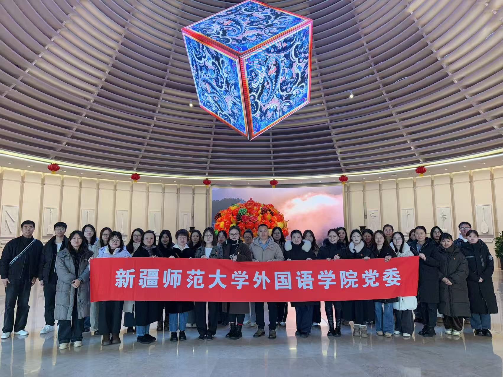 为深入学习贯彻习近平新时代中国特色社会主义思想,传承和弘扬中华优秀传统文化,铸牢中华民族共同体意识,3月13日上午,外国语学院党委组织师生党员及积极分子代表一行35人,赴新疆非物质文化遗产馆开展“探寻非遗印记 筑牢文化根基”主题党日活动。