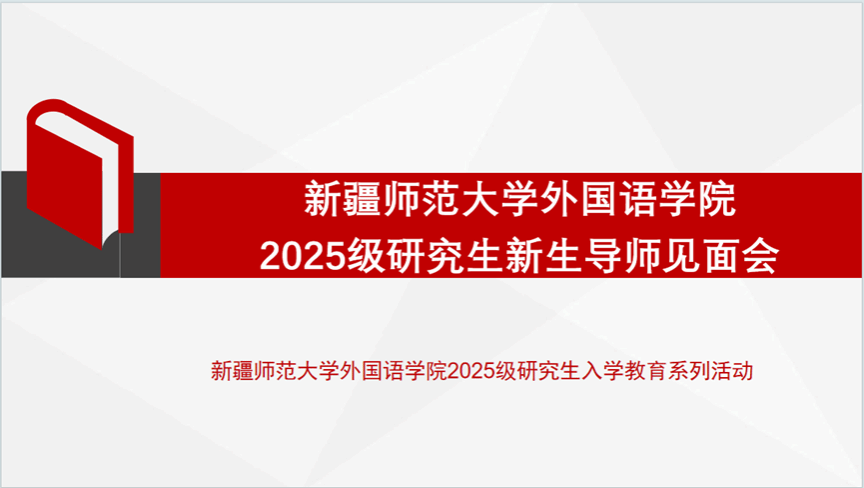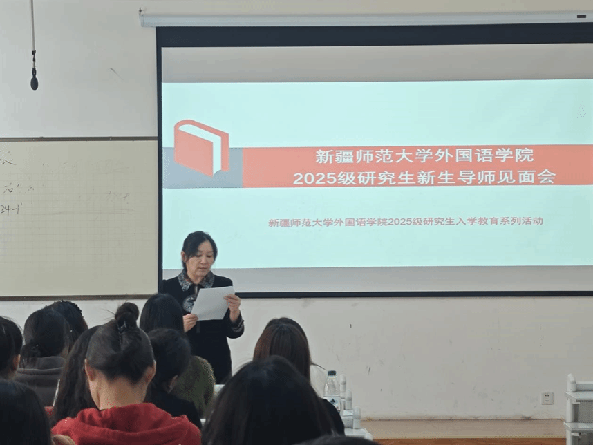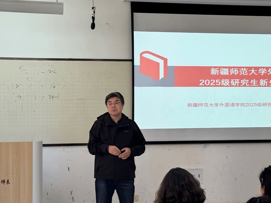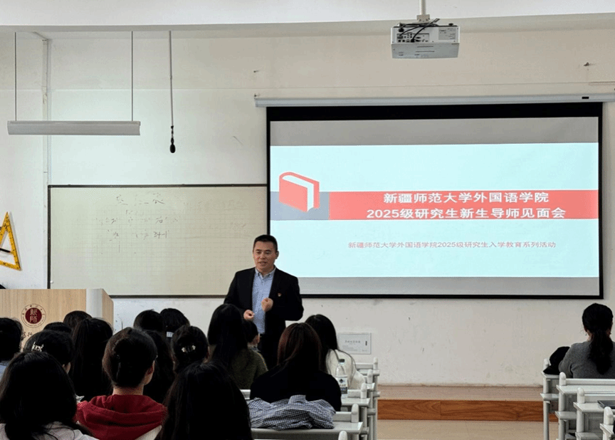 为帮助2025级研究生深入了解专业学习要求,明确学术发展方向,外国语学院于2025年9月26日在2号教学楼320教室成功举办“2025级研究生新生导师见面会”。外国语学院党委副书记、院长伊力米热·伊力亚斯,党委副书记、纪委书记季茂岳,副院长尹小荣、全体硕士生导师、研究生秘书以及2025级全体研究生参加了见面会。会议由外国语学院研究生会副主席陈丹宁主持。