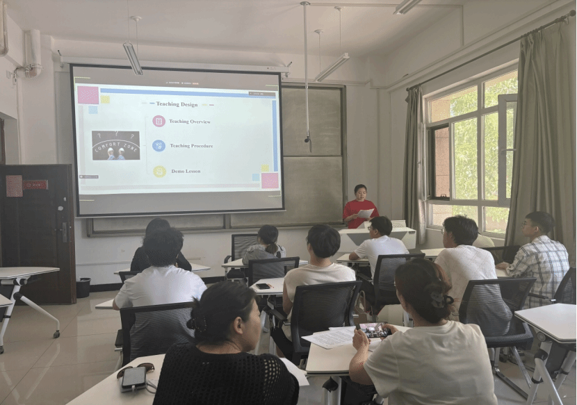 展示环节结束后,获奖教师们与在场教师进行了深入的互动交流。她们从课程目标的精准设定、教学重点的突出把握、思政融入的自然流畅、互动设计的巧妙构思以及产出任务的有效设计等多个维度,分享了各自的教学经验与心得。同时,针对多媒体课件的制作技巧、板书设计的艺术性、语言教具的合理使用等方面,也提出了诸多具有创新性和实用性的改进建议。